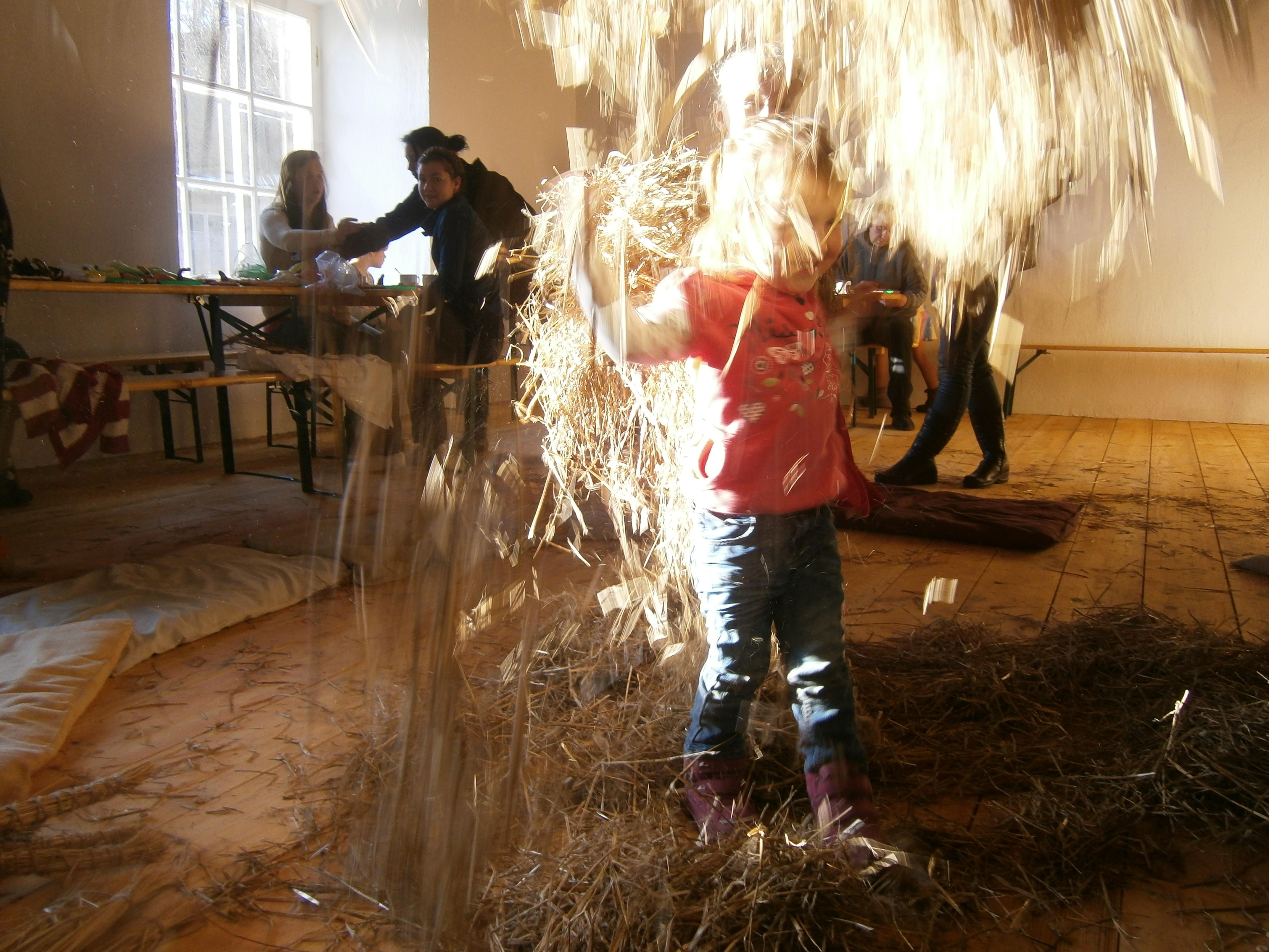 Mõnus heintel istumine ja meisterdamine heintest, lõngast, ubadest. Valmis saavad kingsepad kingsepamänguks, õlekantsikud passilöömiseks,